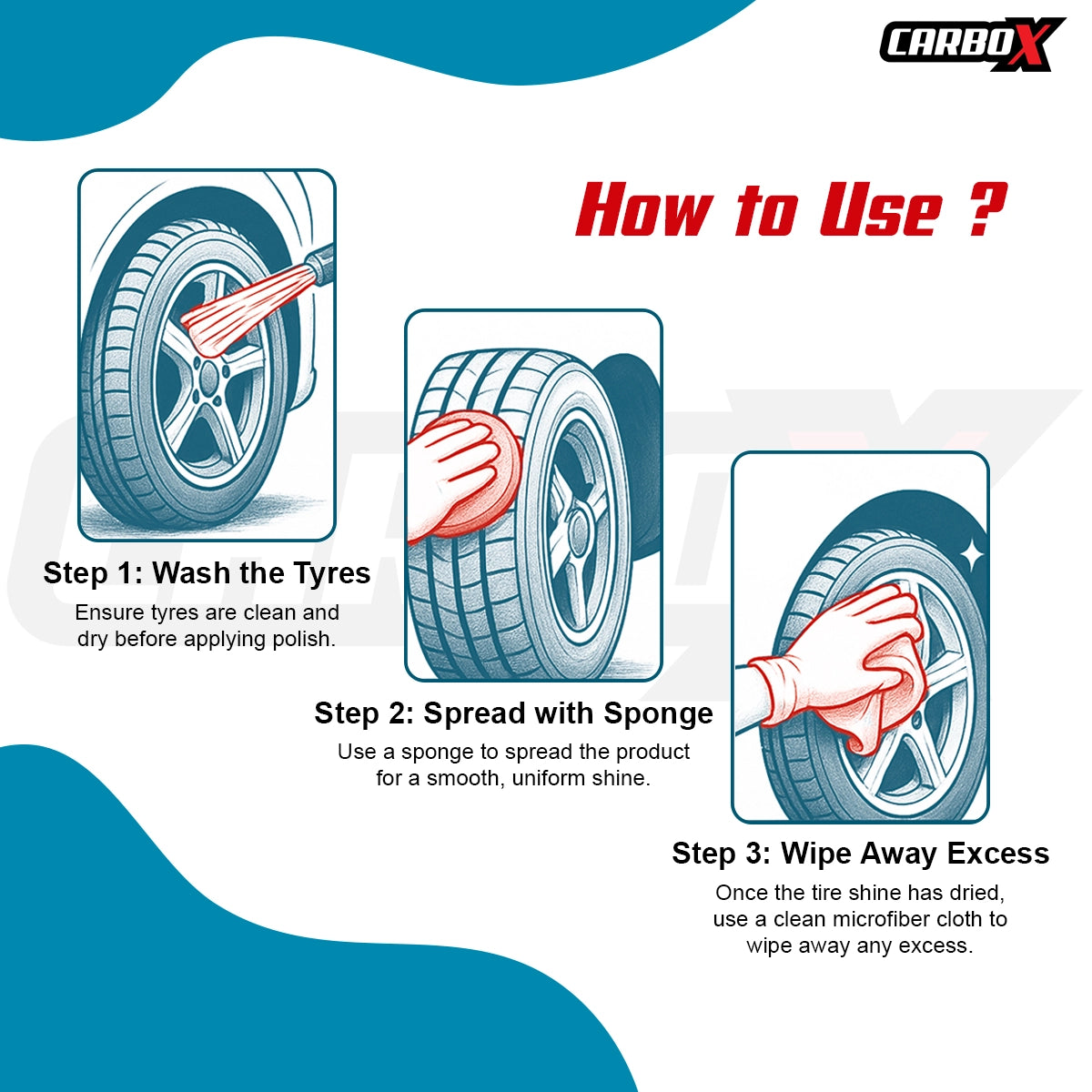 ✔ Long Lasting Shine: Keeps your tires looking freshly polished for weeks.